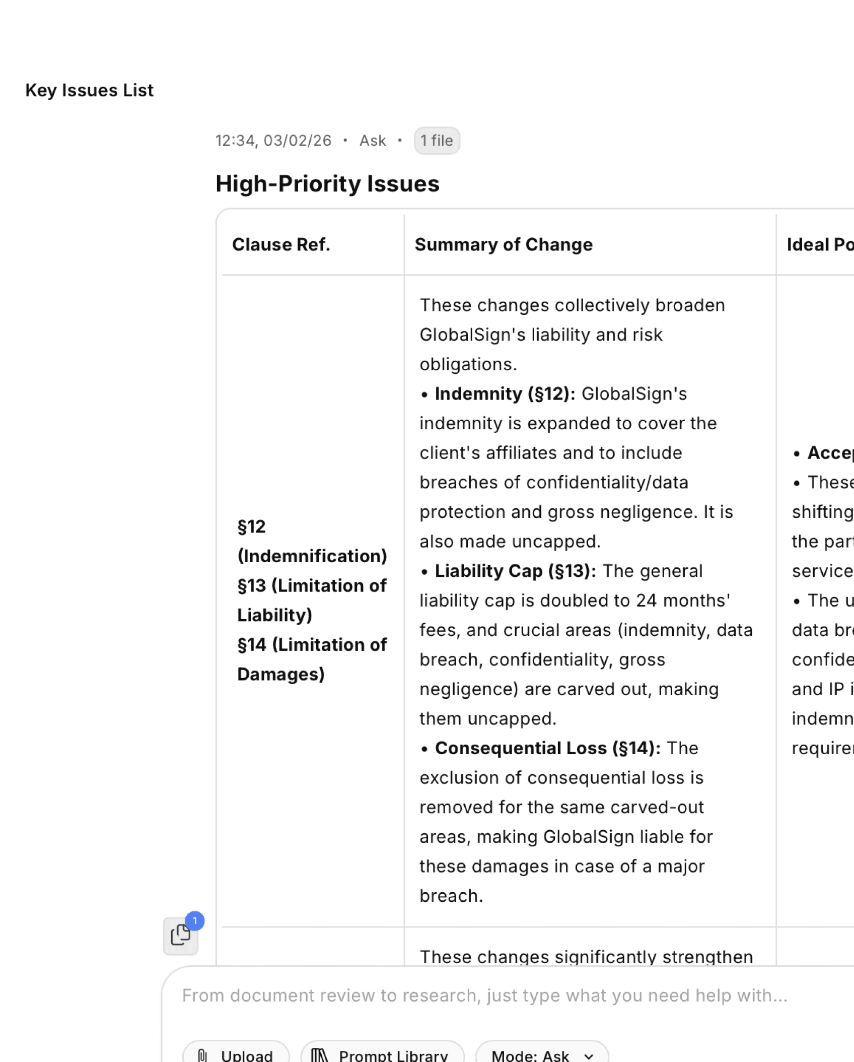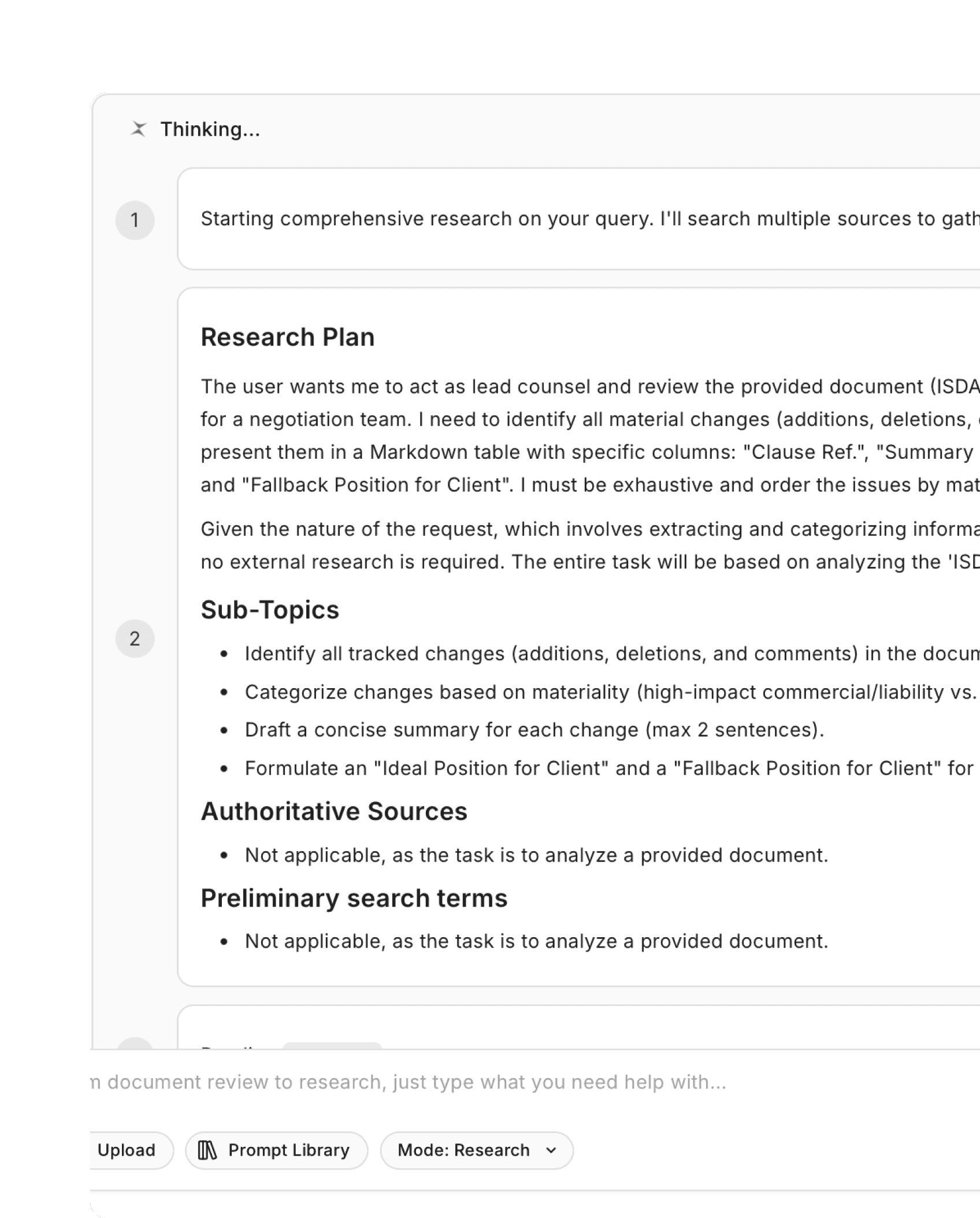 Use prompts and agents aligned to your practice area, governing law, and internal playbook.