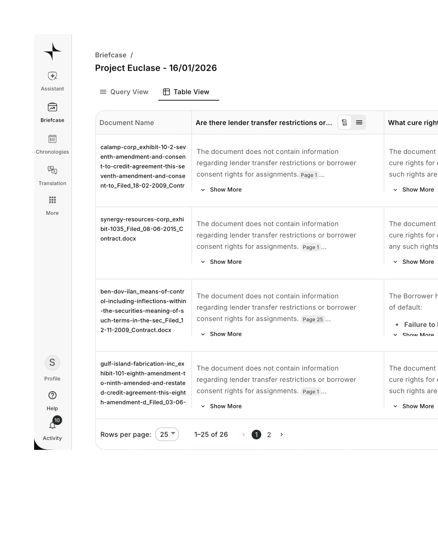 Review hundreds of documents at once instead of analysing them one by one.