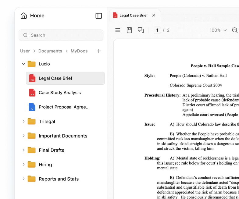 A focused document workspace to think, read, and draft without switching tools.