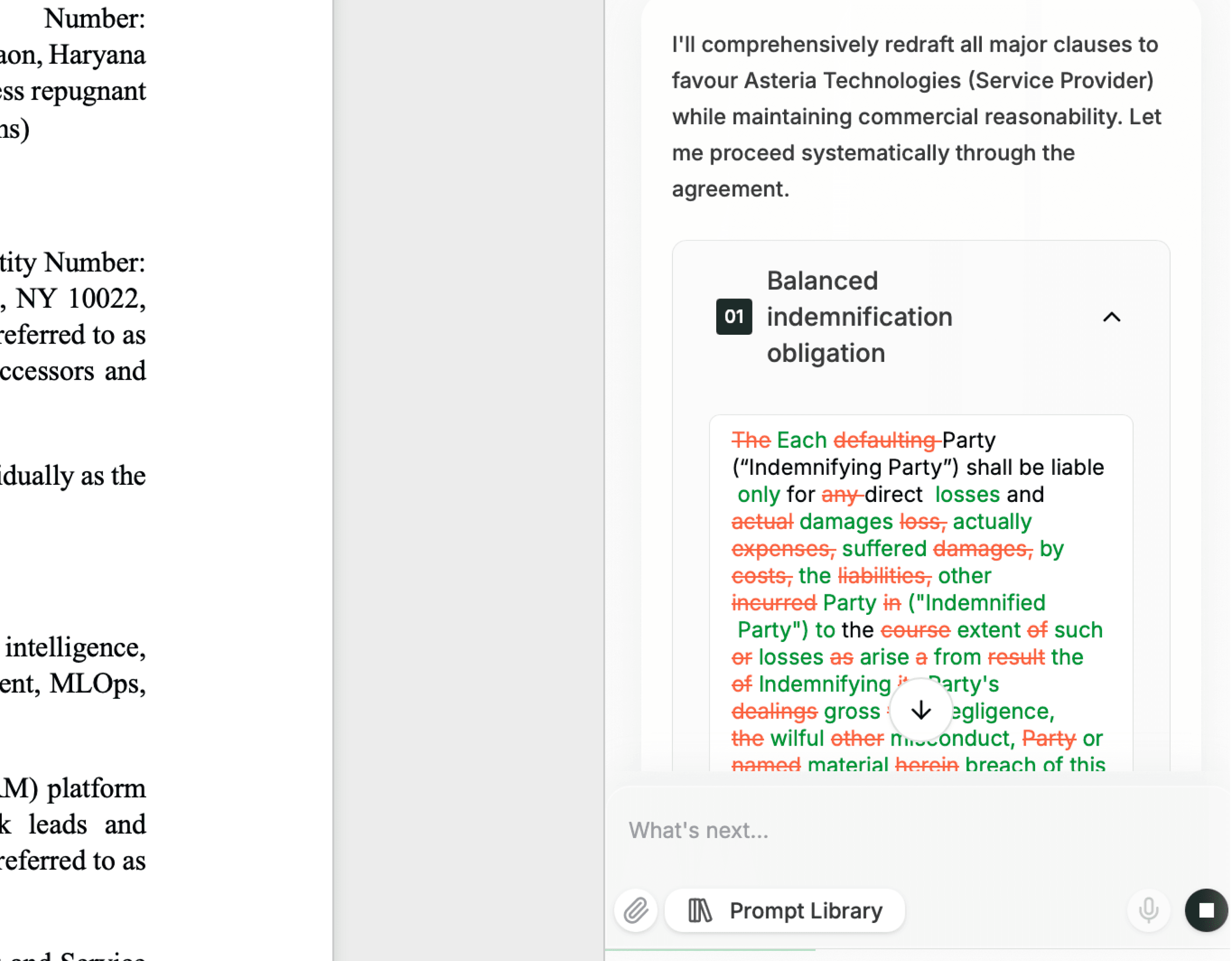 Drafting, redlining, and negotiation intelligence that respects the craft of legal writing.