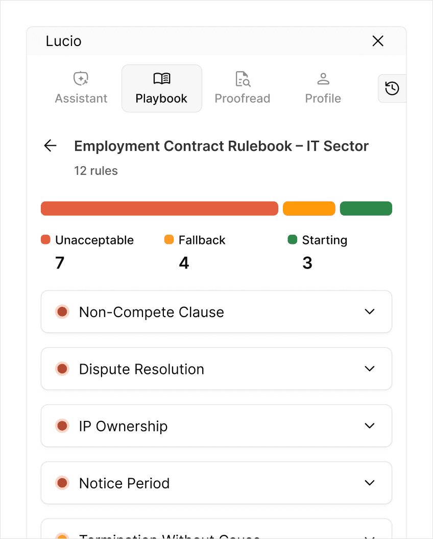 Spot deviations from your firm’s position instantly and negotiate with full context.